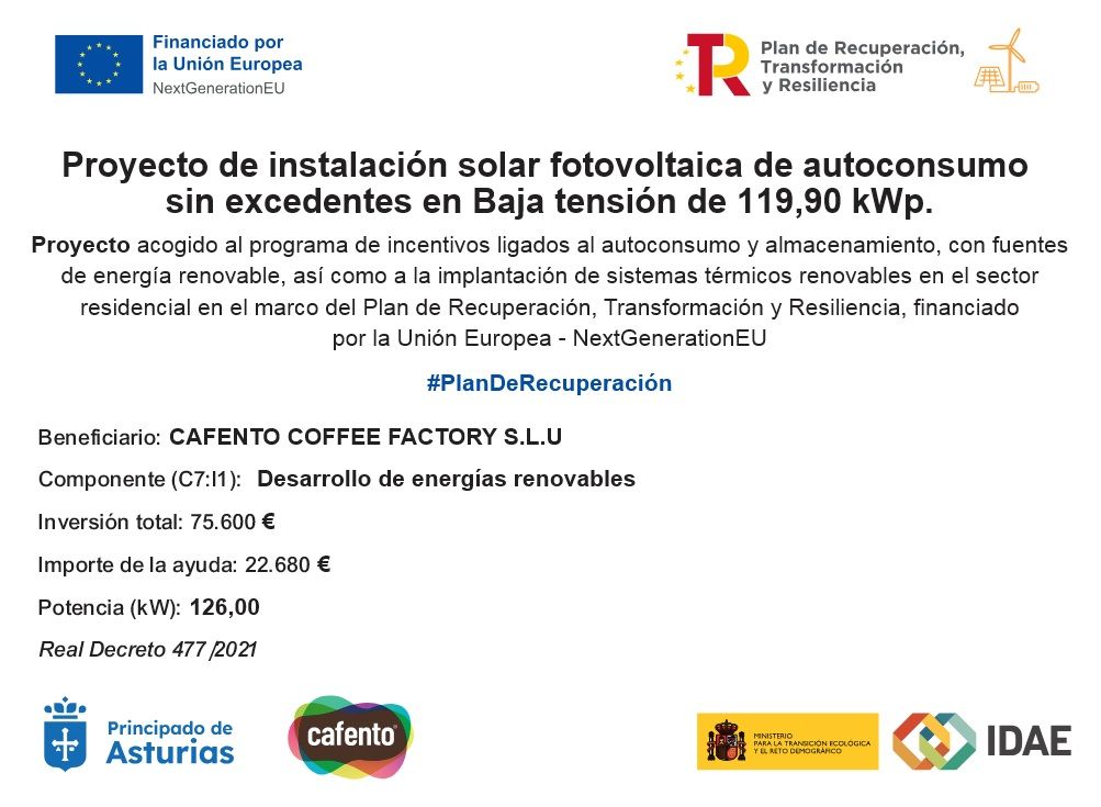 Incremento del 60% de la capacidad de tuesta de la fábrica de Cafento Coffee Factory en Tineo (Asturias), igualando las capacidades de los tres procesos principales: procesado café verde, tueste y envasado.